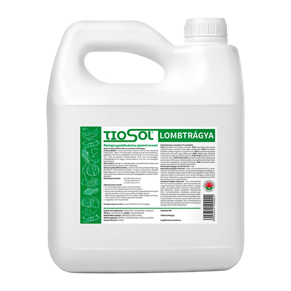 A TIOSOL® lombtrágyaegész évben használható lombtrágya kalcium-, kén- és bór hiány megelőzésére. Az egyetlen kalcium-poliszulfid (poliszulfidkén) tartalmú készítmény, ami biotermesztésben is engedélyezett, emellett egyedivé teszi a bórtartalom is, mint kísérő mikroelem. A növényre permetként kijuttatva gyorsan elbomlik kalcium-ionra és elemi kénre. A kalcium hamarosan bejut a levélszövetbe, a kén azonban a levélről lassan párolog, ventillál, a levegővel reakcióba lép, ami időben elnyújtott és meglehetősen összetett hatást biztosít. Ezáltal a termés mennyiségét és minőségét egyaránt javítja, tápanyagforrás, emellett a kén fokozza a növényvédelem hatékonyságát. Lombtrágyaként kijuttatva tökéletes megoldás a talajok leggyakrabban előforduló mész és kénhiányának kompenzálására, ami talajtrágyákkal sokkal költségesebben orvosolható. Bórtartalma révén elősegíti a virágképződést, jobb termékenyülést, betakarítás előtti alkalmazása növeli a cukor/olajtartalmat, fokozza a sikérképződést. A TIOSOL lombtrágya rendszeres használata erősíti a levélzet és a termés/gyümölcs ellenállóképességét, javítja a termés beltartalmi értékét és tárolhatóságát.